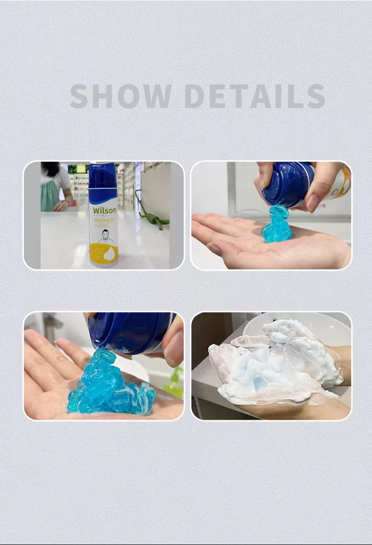 Wilson Cooling Menthol Instant Foam Hydration-Friendly Shaving Gel κάνει το ξύρισμα πιο σφιχτό και καθαρότερο. Αυτό το προϊόν μπορεί να μαλακώσει αποτελεσματικά την γενειάδα ταυτόχρονα, μπορεί να κάνει τον χρήστη να αισθάνεται ομαλή και άνετη, μετά από το αφρό του λεπτού αφρού για να αγγίξει τη ρίζα, έτσι ώστε να ξυρίσει ομαλά, χωρίς ζημιά στο δέρμα. Ενυδατώστε το δέρμα χωρίς ξηρότητα ή δυσφορία.